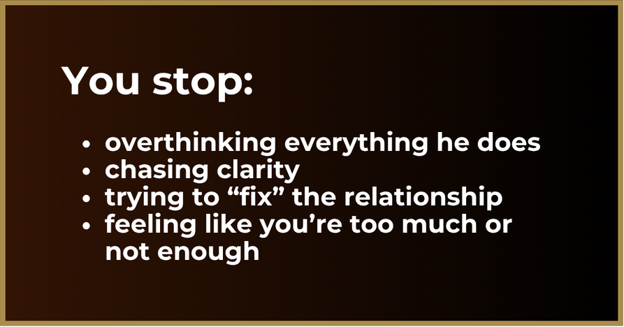 As you begin to see what actually creates trust, emotional safety, and commitment in a man, you stop overgiving, overthinking, and questioning yourself—and start relating from clarity, self-respect, and grounded confidence. This is how you move from longing for deeper love… to actually creating a relationship where you feel chosen, connected, and at home.