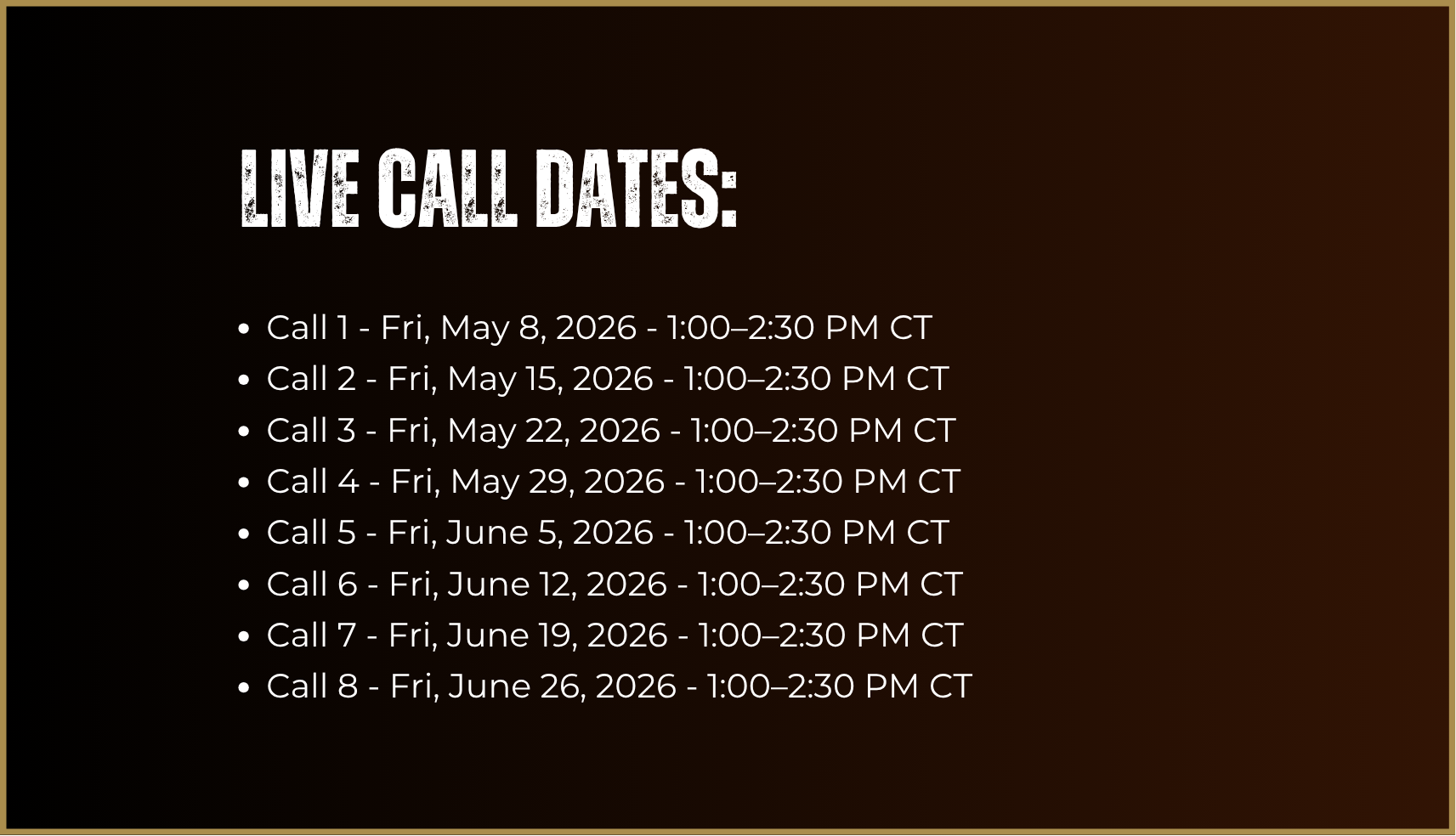 8 Live Calls (Over 2 Months)